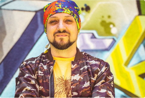Митака е не само талантлив графити артист, но и татуист, както и един от основните ни обучители в нашия магазин във Варна (ул. Русе 33). Там той работи с бъдещите таланти и предава уменията и вдъхновението си на следващото поколение улични артисти, които се възпитат в това да не бъдат гамени, а артисти, които да творят и да изразяват себе си чрез талантите си!